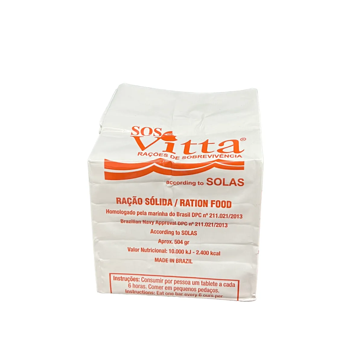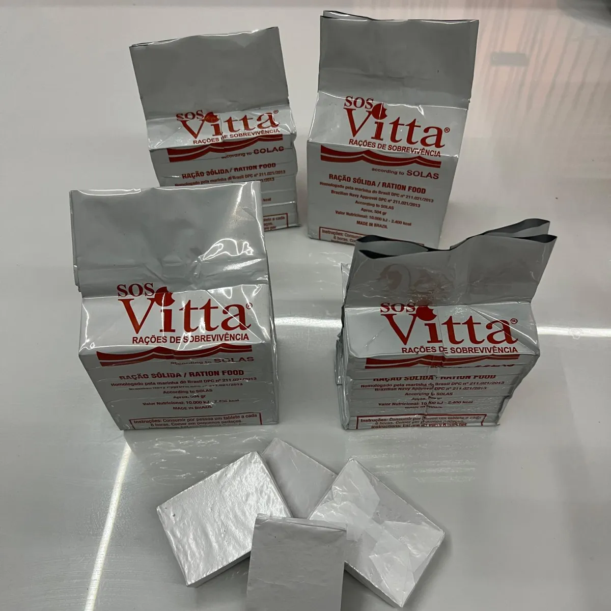 A ração sólida de emergência S.O.S Vitta foi desenvolvida com a mais alta tecnologia e ingredientes altamente selecionados, em parceria com o instituto de tecnologia em alimentos Cereal Chocotec - ITAL, com patente registrada junto ao Instituto Nacional de Propriedade Industrial (INPI). Homologada pela Marinha do Brasil (DPC N 211.021/2013), essa ração oferece 10.000 kJ (2400 kcal) em cada pacote de 504g, excedendo os requisitos de sobrevivência DPC SOLAS. É uma das melhores rações sólidas de sobrevivência do mundo, ideal para situações extremas.